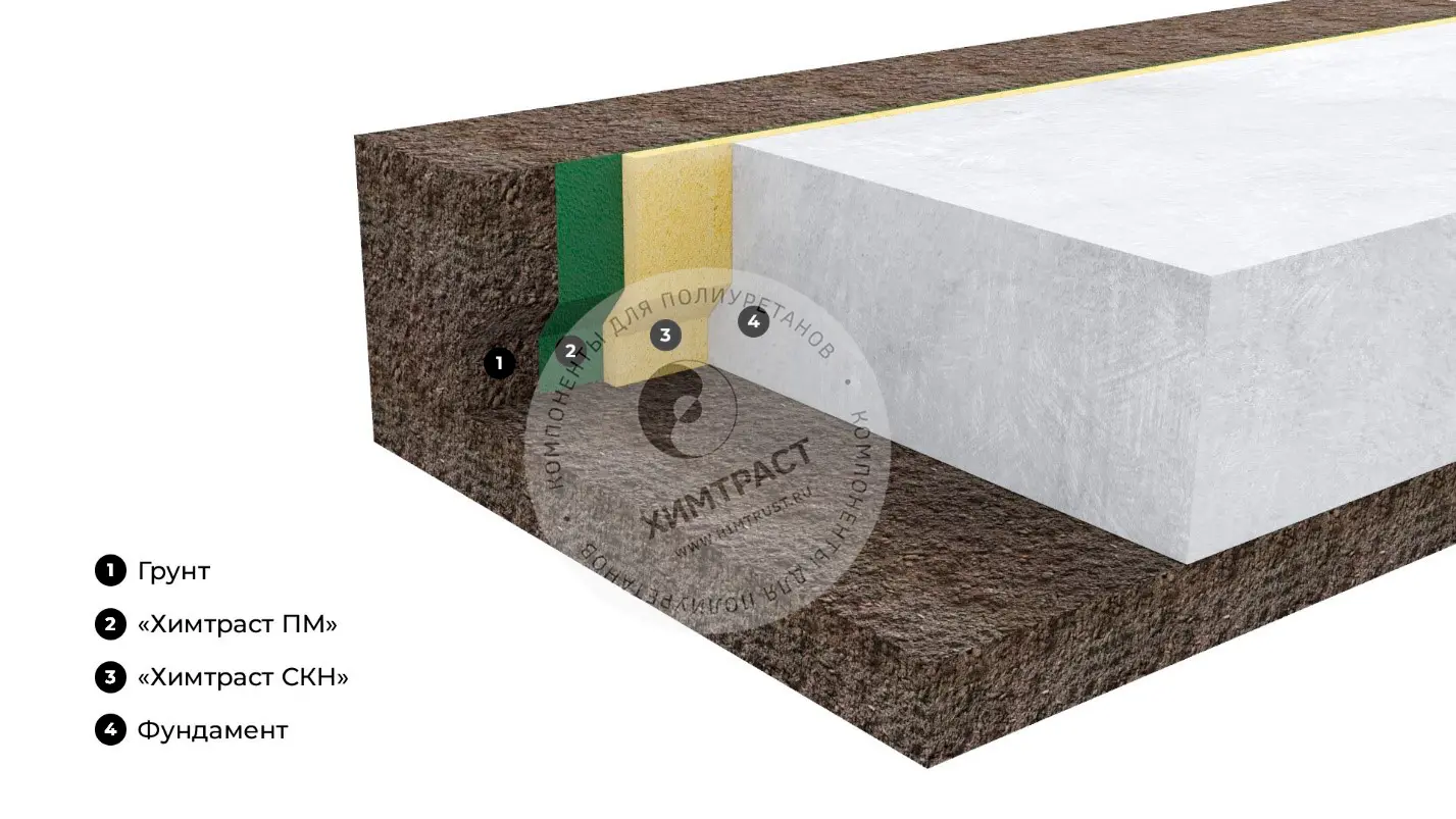 2) Двухкомпонентная система для производства полимочевины. Покрытия на основе полимочевины используются для гидроизоляции фундаментов в районах с водонасыщенным грунтом: